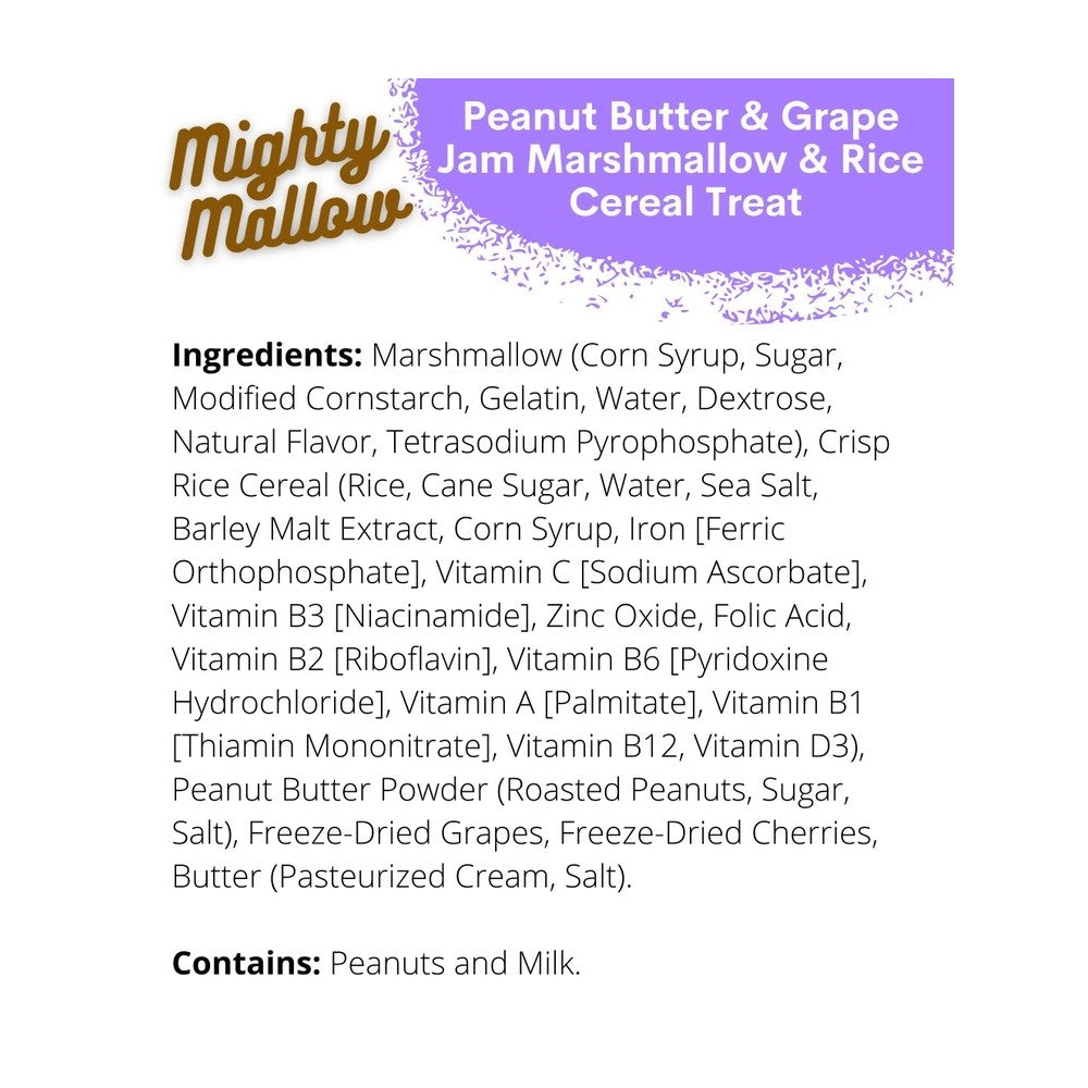 From Mighty Mallow Crispie Treats: Nothing pairs better than peanut butter with jelly—except maybe marshmallow and rice cereal! Our PB & Jam Crispie Treat blends these iconic flavors for a double-dose of delicious nostalgia.