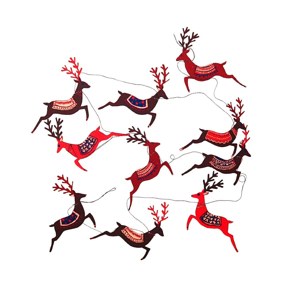 From East End Press: This is a new version of our bestselling reindeer garland! Hand printed three metre long paper garland, featuring twenty screen printed paper reindeer in colourful tones. The garland is printed on both sides on thick, hand made cotton paper. The shapes are sewn in a random order along strong cotton thread, with hanging loops either end, meaning the garland can be hung straight away!