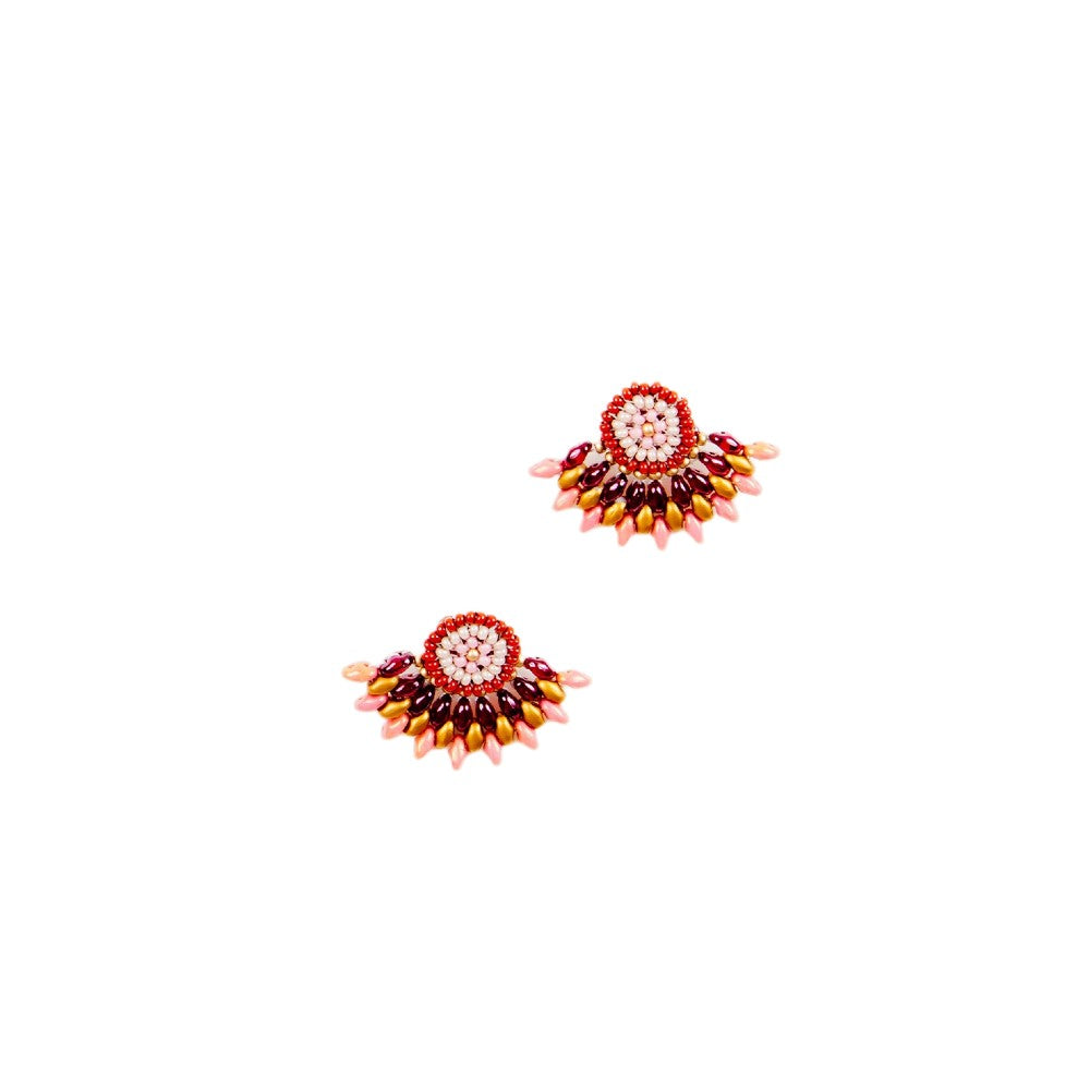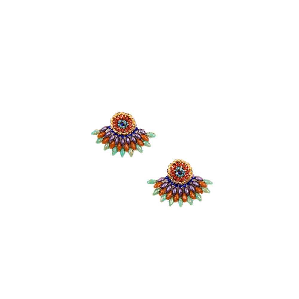 From Altiplano: Our best selling boho-chic Duo Post Earrings combine luminous color with bold design. Offered in multiple patterns and color designs, the hand beaded Duo Post Earrings are made with glass seed beads, leather backing, and surgical steel posts.