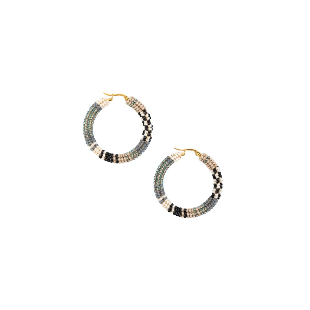From Altiplano: This bold, detailed earring is perfect for everyday wear or special occasions. Offered in multiple patterns and color designs, the hand beaded Patchwork Hoop Earrings are made with glass seed beads and are safely secured with gold plated lever.