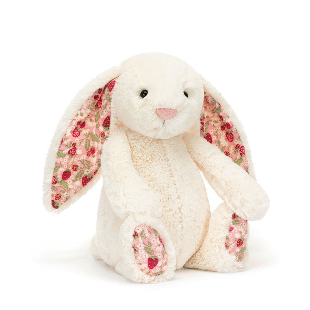 From Jellycat: Blossom Bunny can't wait to join the picnic--this bobtail bopper has even brought some flowers! Dreamy-soft in warm fur, with a pink bobble nose and blossom ears and paws, this bunny brings the springtime.