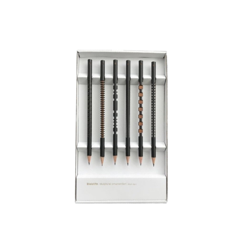 From Tät-Tat: Inspired by the love for art and artists, these intricately designed and crafted wooden pencils are beautiful objects to be used for writing as well as to be admired. Set contains one each of the following pencils: Eiffel, Ring, Code, Fisch, Würfel and Turm.