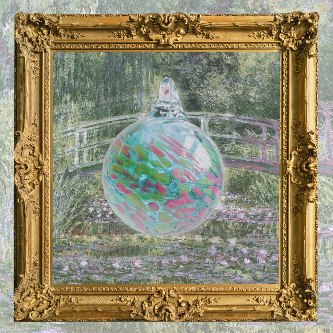 From Luke Adams Glass: These handblown glass ornaments will bring a touch of timeless beauty to any room. With designs inspired by famous works of art, these ornaments are both unique and charming. Perfect for any art lover, any time of year. This ornament is inspired by the oil painting, "Bridge Over a Pond of Water Lilies," by Claude Monet.
