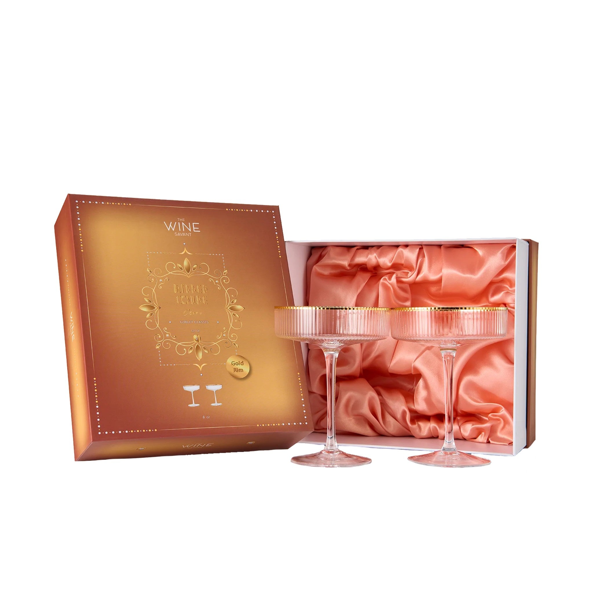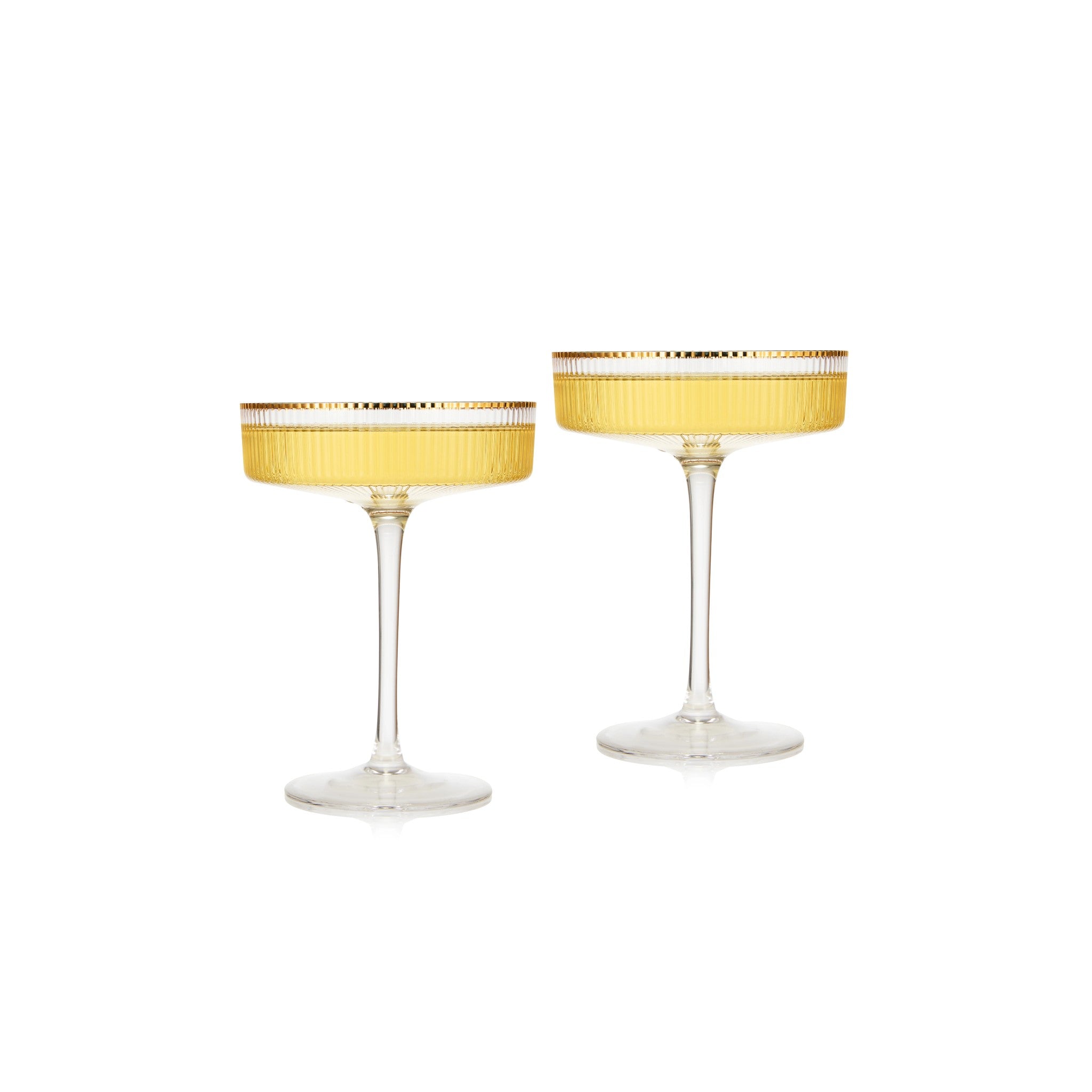 From The Wine Savant: This set of 2 gold rim ribbed glasses are perfect for toasting your favorite drinks. The ripple ribbed design serves as a fun and unique way to dress up your bar or entertaining space. Enjoy these glasses with friends while celebrating any occasion, or simply use them everyday in the comfort of your own home. Enhance your overall home decor with these elegant glasses. With their gold-rim accent, they can be used for any occasion, including anniversaries, weddings and all sorts of parties.